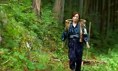 Stepson perverted his hairy Japanese step-mother to touch her small beauties and lick nipples