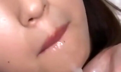 Japanese cutie swallows a huge mouthhole of cum