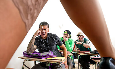 Japanese sweetie squirts and gets gangbanged